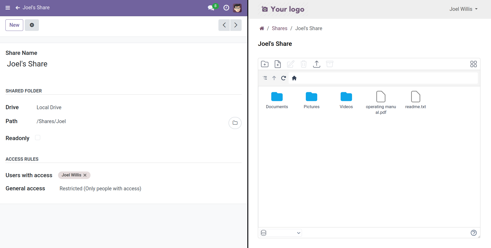Cloudlink - File Sharing is a powerful Odoo module for seamless file sharing. It enables bidirectional sharing of files and folders with external partners, with options for readonly or editable access. Create public shares accessible to anyone or restricted shares for specific users, ensuring secure and flexible collaboration.